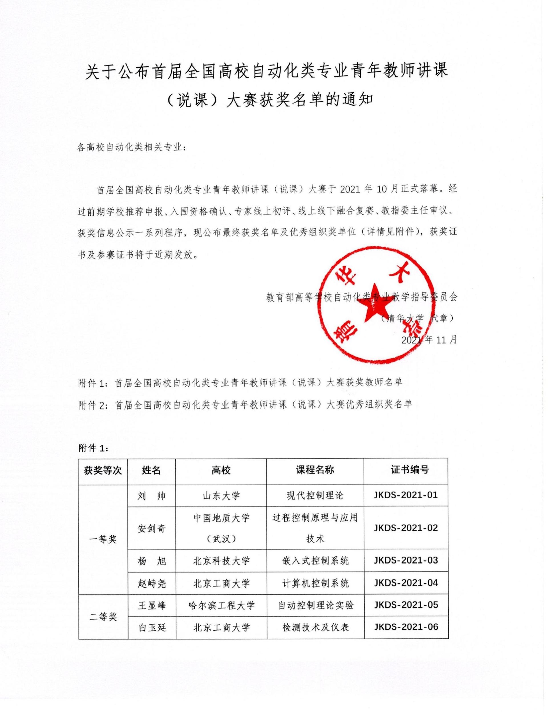 本届比赛受到全国自动化类专业教师的广泛关注和积极参与,共有来自86所高校的116名教师参加。前后历时半年,通过学校推荐申报、入围资格确认、专家线上初评、线上线下融合复赛、教指委主任审议、获奖信息公示等一系列程序,最终决出一等奖4名,二等奖11名,三等奖20名。安剑奇教授以过硬的教学能力脱颖而出,在全国教学交流与竞赛平台上展现了18影片