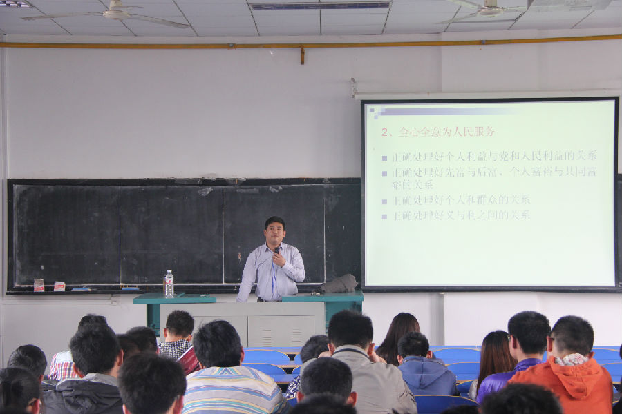党委副书记何建新老师主讲,其授课主题是“共产党员的条件、义务和权利”。