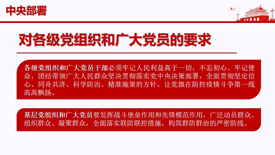 首先,支部书记白春辉围绕习近平总书记关于坚决打赢疫情防控阻击战的重要指示展开,带领全体党员学习中央重大决策部署,强调人民群众生命安全和身体健康是疫情防控的“第一位”要求。白春辉同志要求全体党员充分理解坚定信心、同舟共济、科学防治、精准施策16字方针,增强“四个意识”、坚定“四个自信”、做到“两个维护,要广泛动员群众、组织群众、凝聚群众。
