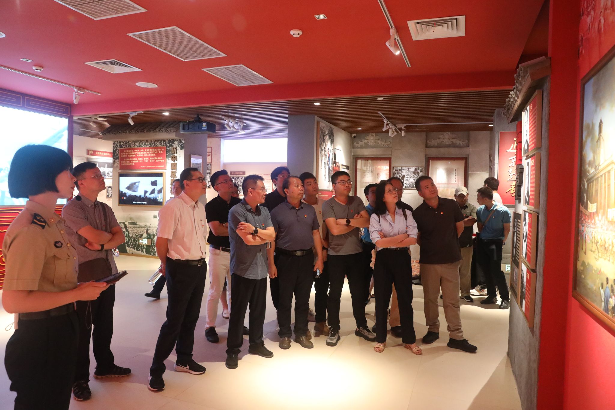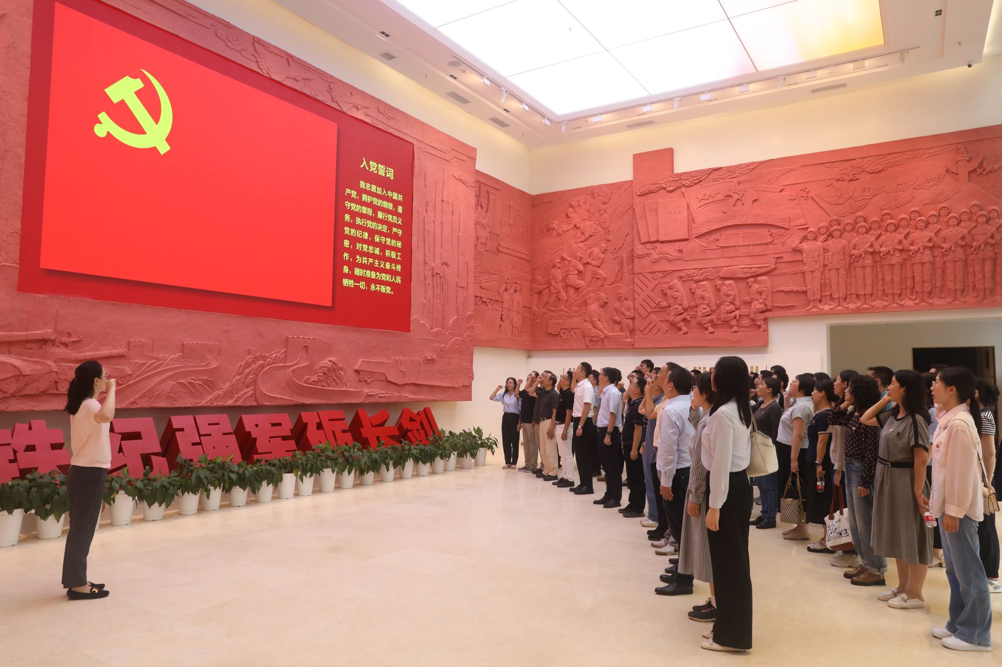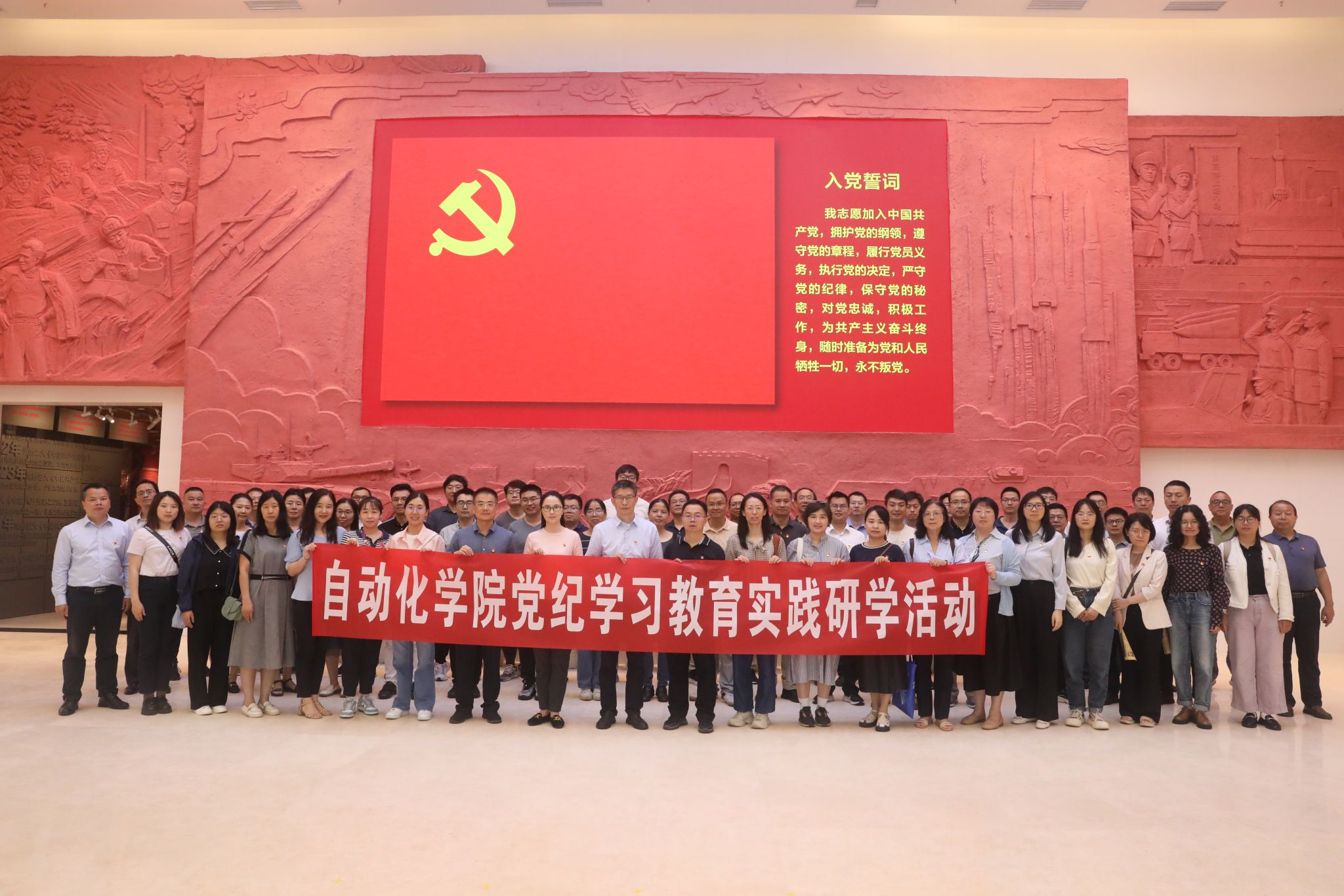 6月26日上午,学院全体教师党员前往火箭军暨驻鄂部队廉政教育中心开展党纪学习教育实践研学活动。展馆大厅气氛庄严,学院党委书记朱荆萨带领学院全体党员领导干部,举起右拳,面向鲜红党旗,重温入党誓词。