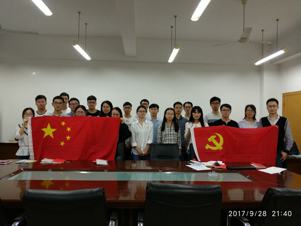 组织委员张日同志带领大家齐唱国歌并重温入党誓词。党支部成员路康同志带领大家重点学习了习近平在省部级主要领导干部专题研讨班开班式上发表的重要讲话精神,并就其中的部分篇章,进行朗诵学习。随后党支部欢迎了新加入的研一党员,进行了本学期发展对象的选拔,经过全体党员无记名投票表决,决定选举刘粲、邱香域两名同志为本学期的两名发展对象。