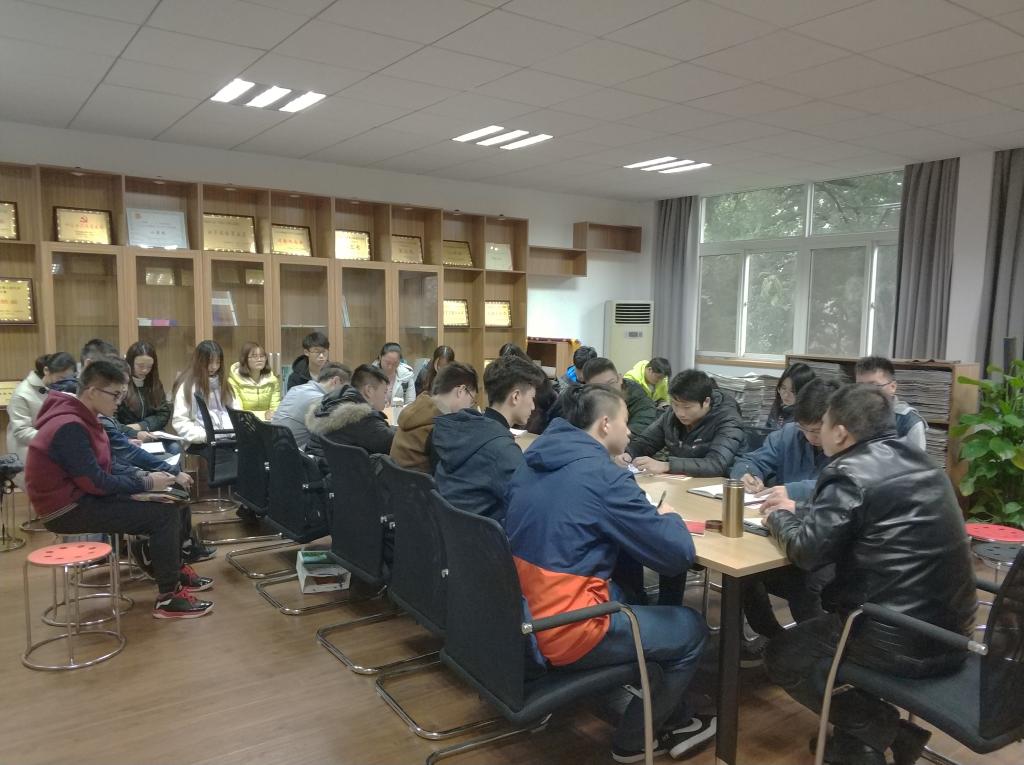 谭文伦老师带领测控二大学生党支部成员学习十九大精神。他强调学习十九大精神的重要性,建议青年党员在学习习近平总书记十九大报告的过程中应结合自身的专业特点,从报告中发掘与专业相关的内容,并加以贯彻和落实