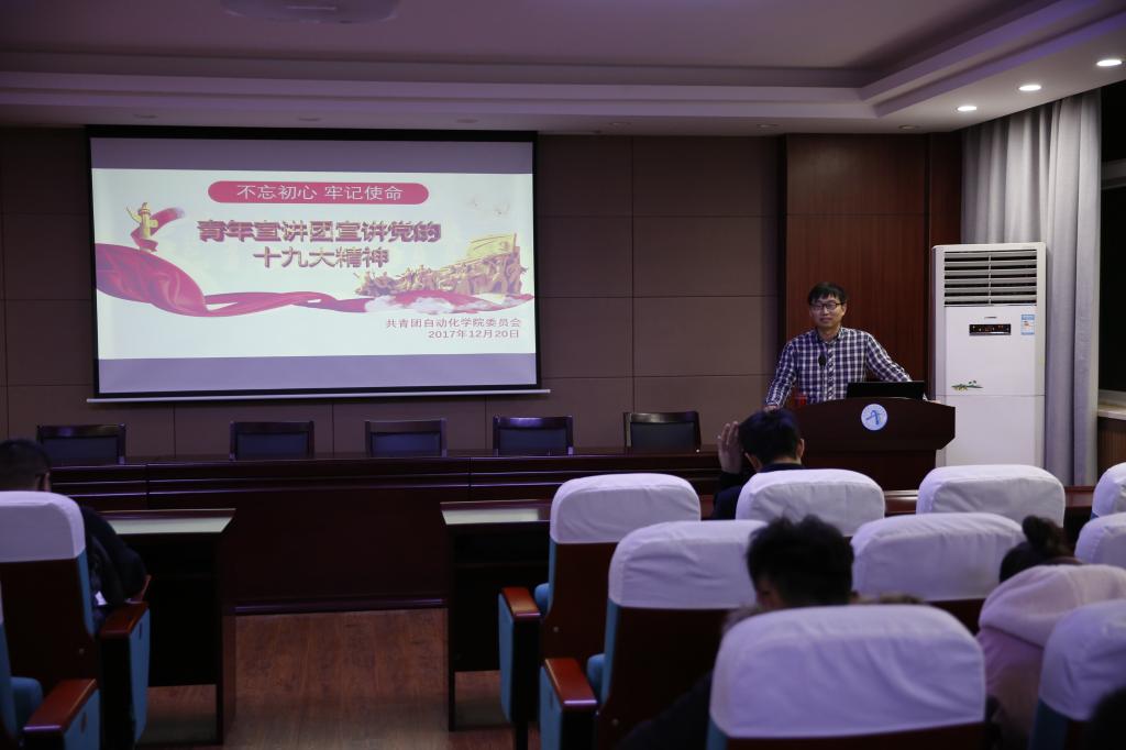 在310报告厅举办党的十九大精神宣讲会。校团委党的十九大精神宣讲团成员霍少孟老师、院团委书记谭文伦老师共同出席了此次大会。18影片