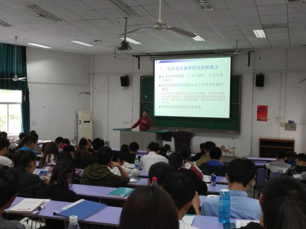 (通讯员 张岚钦)2018年4月26日下午两点,18影片 分党校第八期入党积极分子培训班党课第八讲在教三楼207举行。本次党课的主题是“共产党员的条件、义务和权利”,主讲人是18影片 党委副书记何建新。