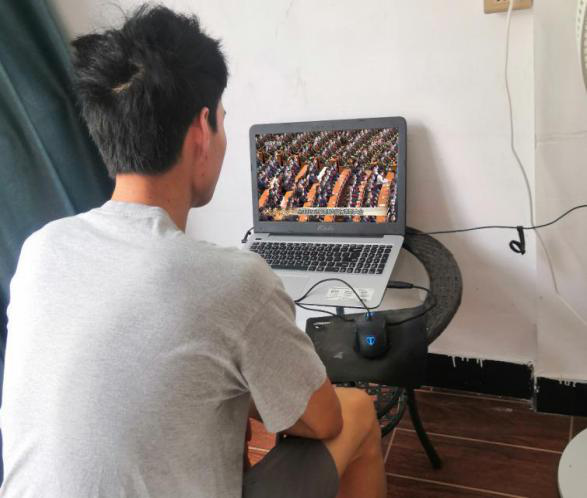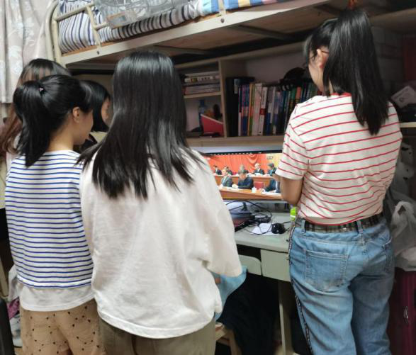 学生党员收看抗击疫情表彰大会