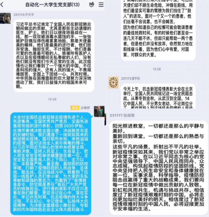 自动化一大学生党支部群内积极发表感想 控制工程硕士生第一党支部群内讨论