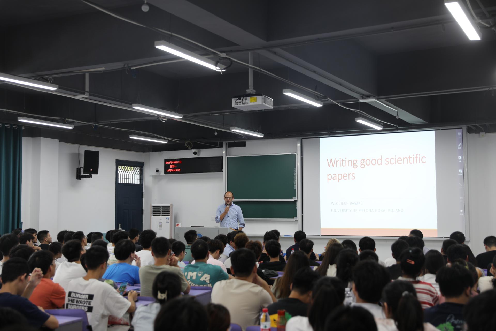 随后,Wojciech Paszke教授以“如何写好一篇学术论文”为题分享了论文写作和发表的经验。从逻辑表达、英语语法等方面为同学们提供了一套学术论文写作的指导方法。