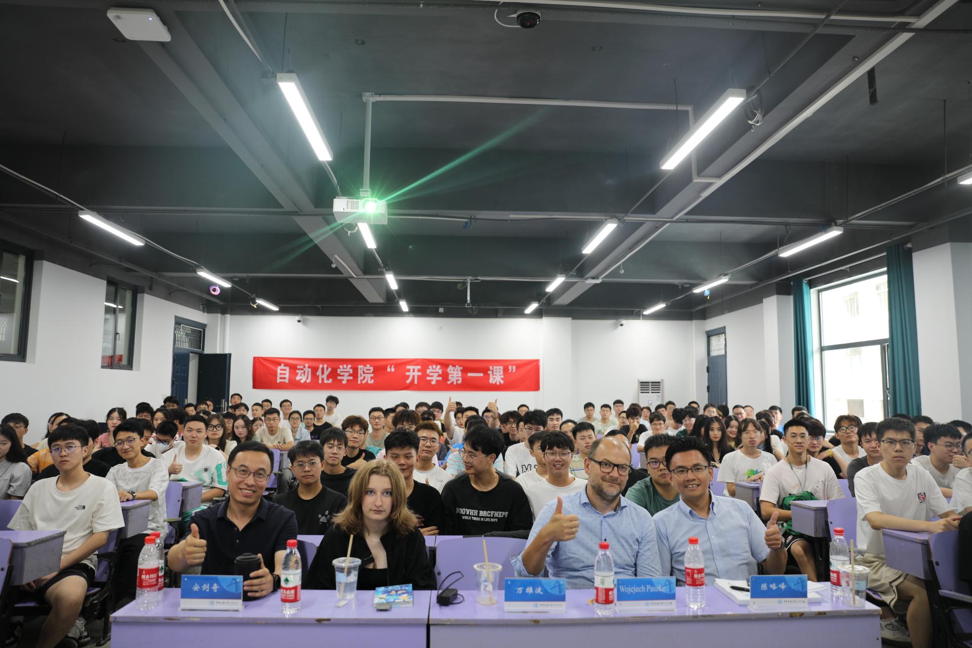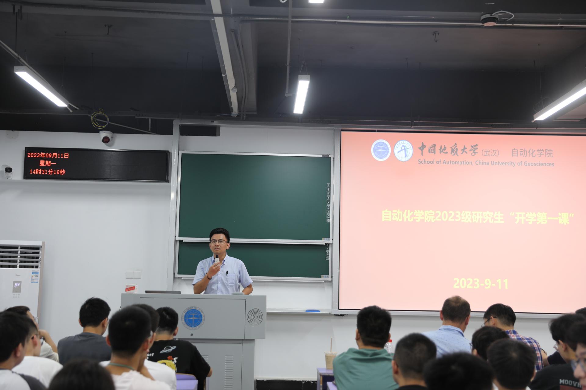 安剑奇教授做主题分享,副院长陈略峰教授、党委副书记王向东、自动控制系万雄波教授、研究生辅导员王艺霖,以及2023级研究生新生共同参加。