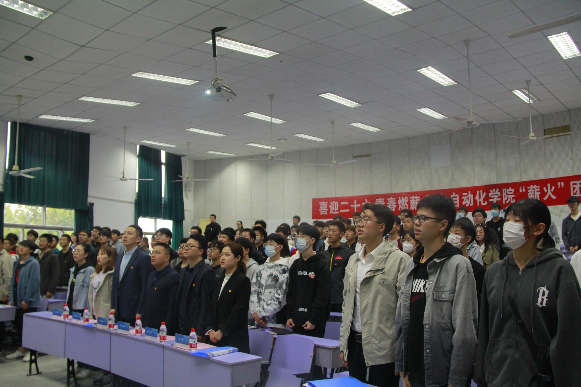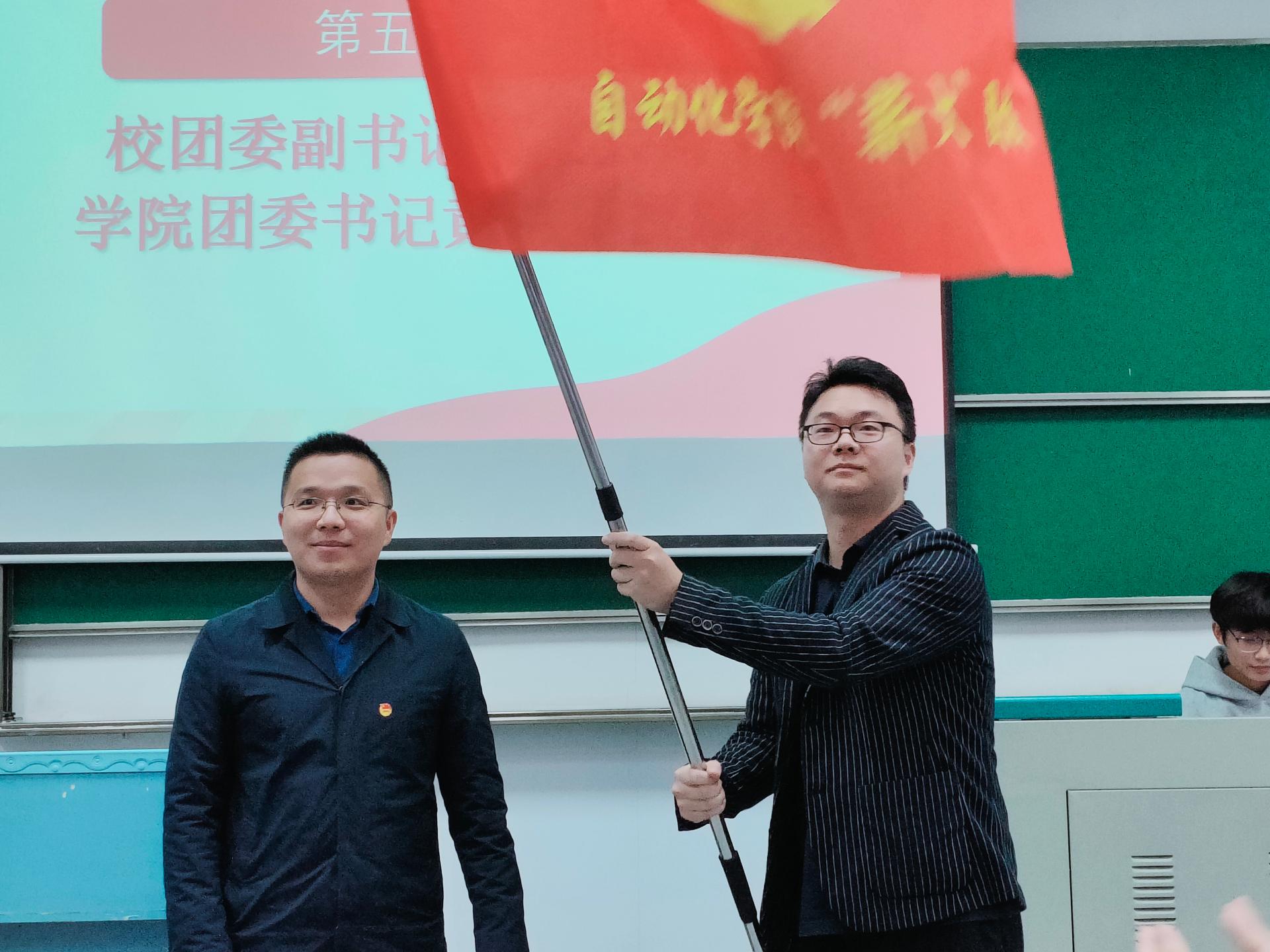 校团委副书记吴文兵教授代表上级团组织向学院团委书记黄兰华授旗。学员代表带领团校全体学员一起重温入团誓词,行宣誓礼,铿锵有力的誓言展现出新时代、新工科青年“强国一代有我在”的决心和信念。宣誓完毕后,全体齐唱中国共青团团歌《光荣啊,中国共青团》,将仪式氛围推向了高潮。