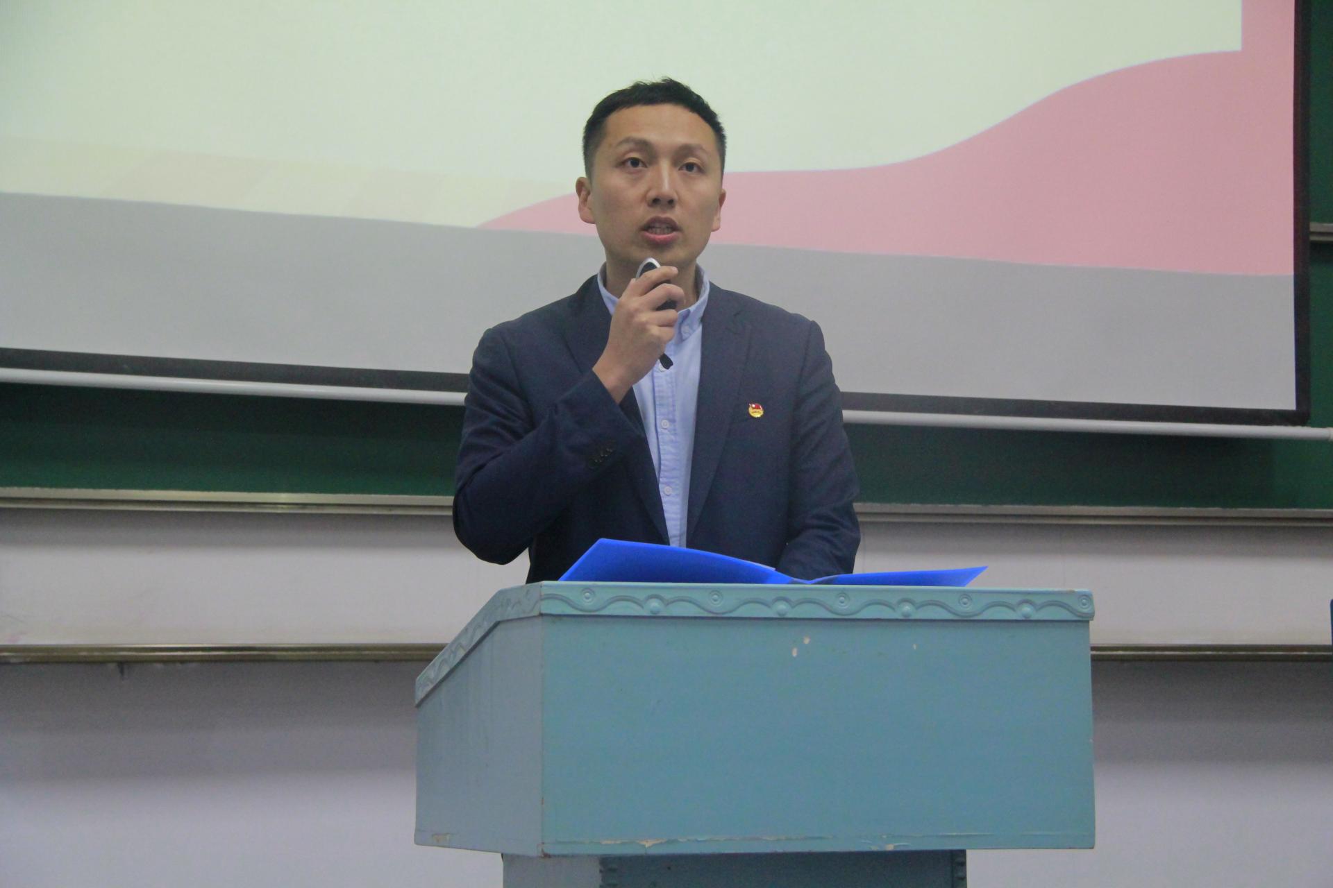 开班仪式结束后,校团委副书记吴文兵教授带来团校第一课。他围绕“科创之梦,为你点燃”的主题,全面且深入地解读了高校创新创业教育内涵以及挑战杯、创青春等双创赛事,深度剖析大学生应该学什么、怎么学、怎么展现自我。同时他引用习近平总书记寄语青年的话语“青年是国家和民族的希望,创新是社会进步的灵魂,创业是推动经济社会发展,改善民生的重要途径”来鼓励、动员在场学员,从现在开始励志勤学、善于积累,把砥砺品质作为人格养成的重要途径,不断培养创新创业的意识与能力。在讲座的最后,吴文兵教授希望大家敢做敢拼敢赢,在各项赛事中锻炼能力,收获佳绩,把深入实践作为成长成才的必由之路和重要阶梯。
