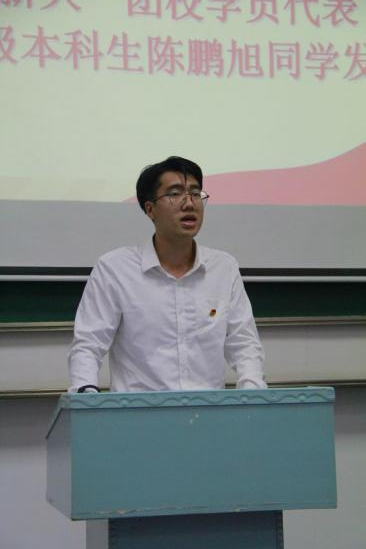 “薪火”团校学员代表2022级本科生陈鹏旭同学发言。他表示,学习是立德之本、增智之源;作为刚刚进入大学的学生干部,要珍惜机会、认真学习,带着为同学服务的初心和使命投入到工作与成长中,以团校培训为起点,在团结奋进中放飞青春梦想。