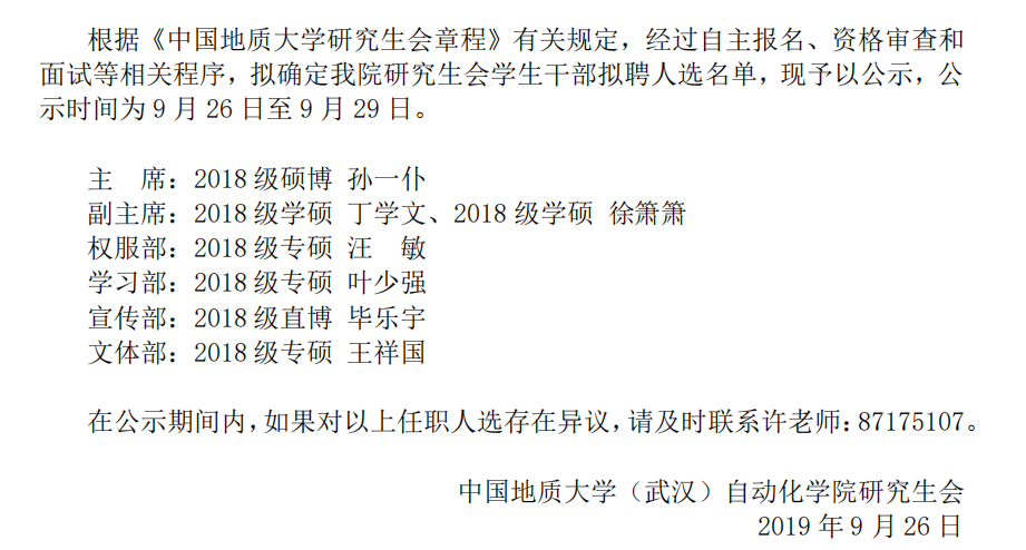 18影片 2019届研究生会干部任前公示