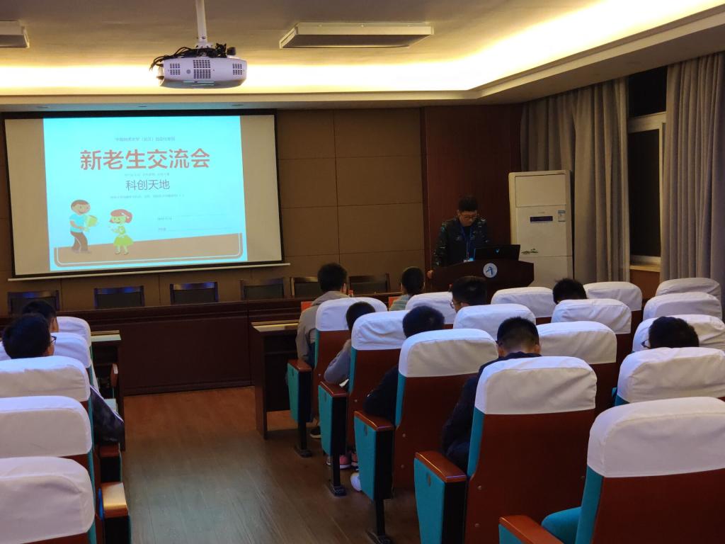 主持人贾玉同学对学长学姐的经历做了介绍。接下来,学长学姐对自己的科创经历进行了分享,并放映了精心准备的PPT和视频。学长学姐向同学们详细介绍了各级、各类的科创比赛,还介绍了科创方面的知识,让大家获益匪浅。