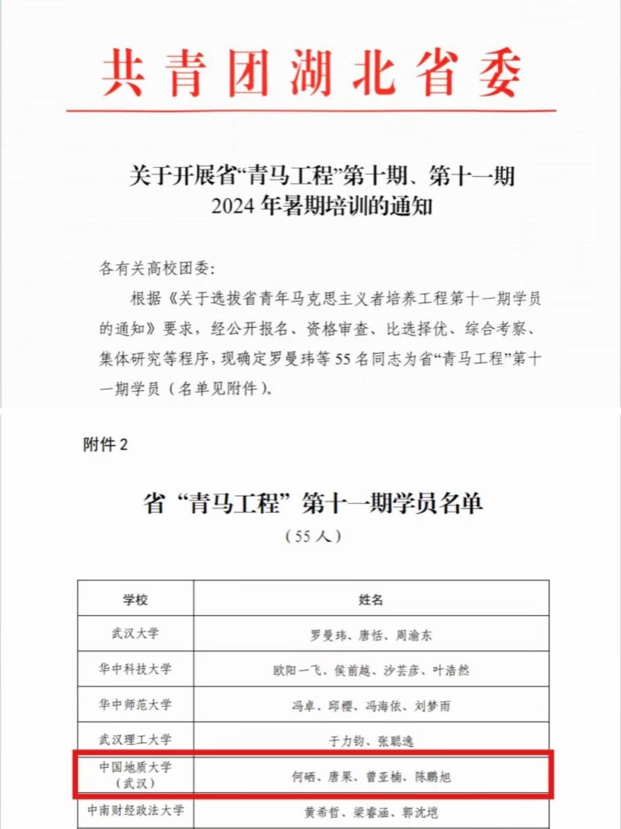 今年5月,共青团湖北省委、湖北省教育厅联合发布《关于选拔省青年马克思主义者培养工程第十一期学员的通知》,从湖北省20所高校中遴选55名大学生作为省“青马工程”第十一期学员。经公开报名、资格审查、比选择优、综合考察、集体研究等程序,18影片