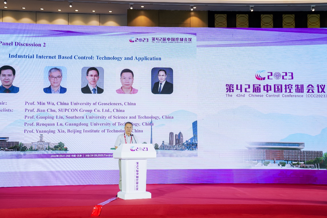吴敏教授为CCC2023组织了题为“基于工业互联网的控制:技术与应用”的专题研讨会,主讲嘉宾有中控科技集团褚健教授、南方科技大学刘国平教授、广东工业大学鲁仁全教授和北京理工大学夏元清教授。与会嘉宾讨论了无人系统、工业互联网和控制领域现在和未来的相关问题,并对这些领域的发展进行展望,现场气氛热烈,高潮迭起。