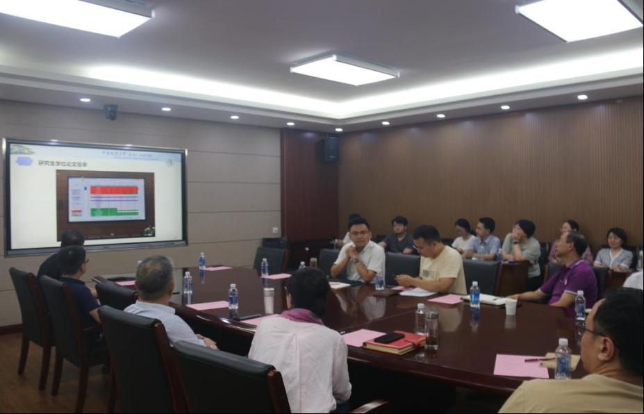 今年全部硕士学位论文在教育部学位与研究生教育发展中心“学位论文质量检测服务平台”进行盲审。陈略峰副院长汇报了研究生盲审及学风建设若干问题,总结了学院首次完成研究生学位论文全盲审相关工作的总体状况,并介绍了学院最新的研究生学术成果要求。王亚午教授以《研究生学位论文盲审前后质量把关》为主题,从文献综述、开题报告、科研组会、学术论文及学位论文预答辩全方位阐述,强调早做准备,在盲审前对学位论文质量把关,并提出在盲审后,导师也要对论文修改和答辩前准备工作进行把关;胡杰教授以《研究所团队学风建设与管理》为主题,介绍了一年来研究所的日常管理与学风建设工作的成果,详细从日常出勤、会议室预约及工作小结等方面介绍了严格考勤和学术管理的成效。