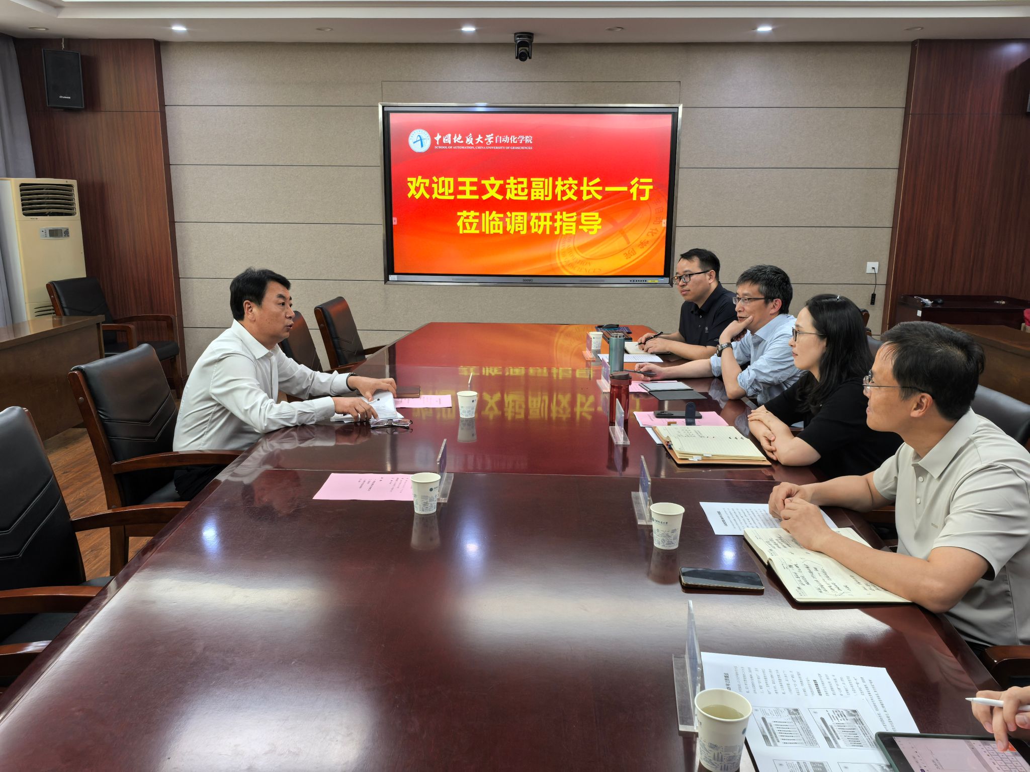 王文起副校长对学院的工作给予了充分肯定,希望学院聚焦教育强国建设地大实践行动方案的各项任务,强化使命担当,深化改革攻坚。一是要认真学习领会教育强国建设规划纲要和三年行动计划主要内容,紧扣立德树人根本任务,充分发挥自身专业优势,拿出切实可行的改革举措和行动方案,着力培养新工科拔尖创新人才,为推动经济社会高质量发展作出更大贡献;二是围绕国家战略需求,做好学科专业的调整优化,建好人工智能专业,抓住新工科建设的历史机遇期,构建具有地大特色的新工科;三是主动对接湖北省支柱产业和战略性新兴产业,深化校企合作,开展有组织科研,推动产教融合,加快构建“产学研用”一体化创新体系,确保科研经费持续增长,不断推动学院发展再上新台阶。