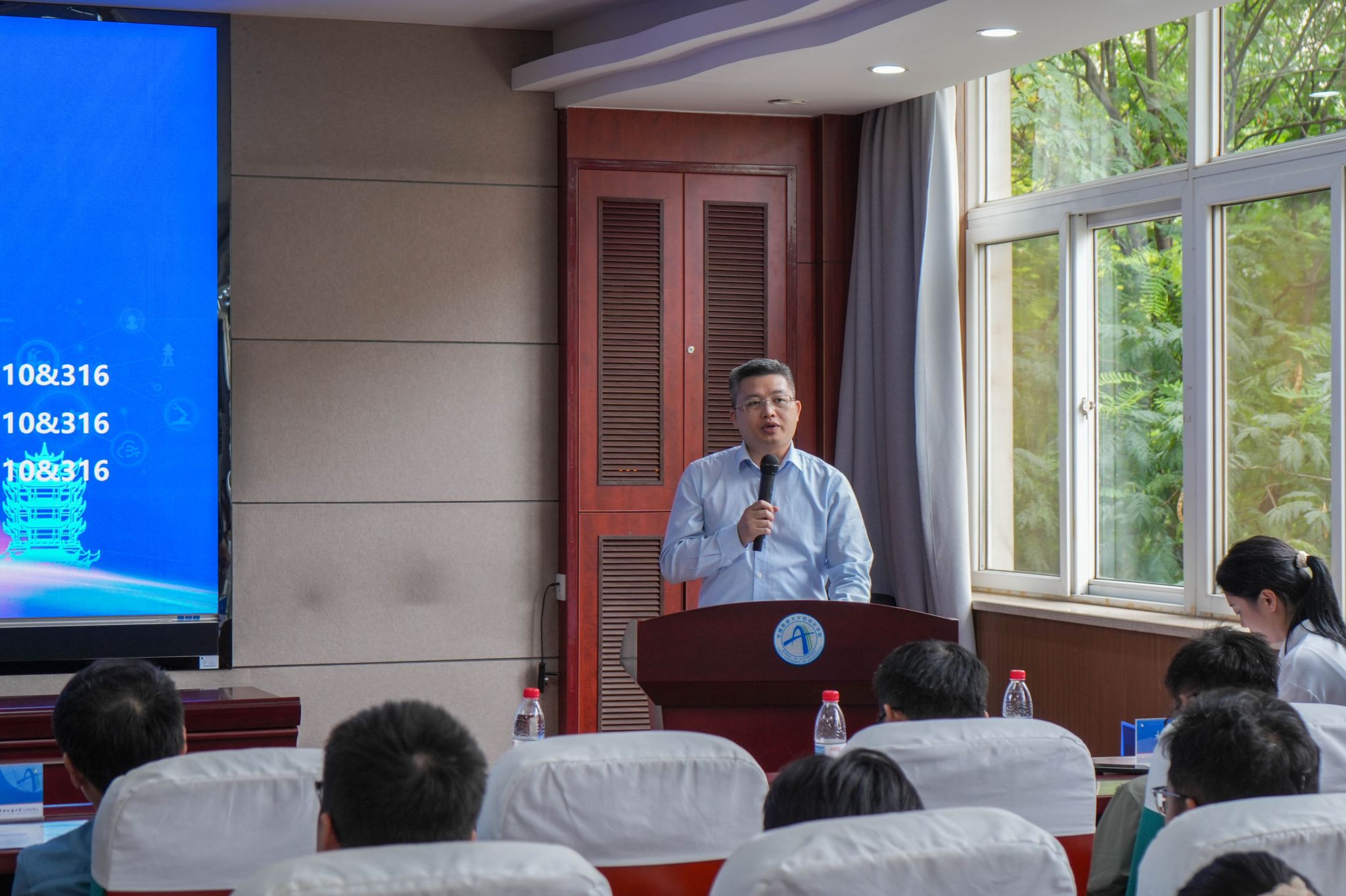 副院长刘振焘教授介绍本届学术年会的日程,本届学术年会9月至12月举行,期间将举办研究生科技报告会、青年学者报告会、研究生国际交流与成果汇报及系列专题学术讲座,构建与朋辈交流、与前沿对话的多层次交流平台。