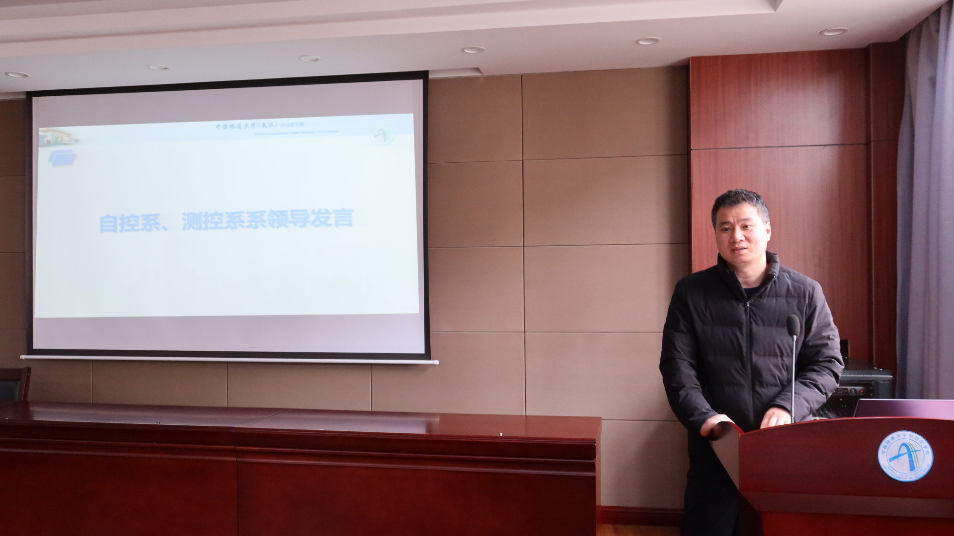 然后自动控制系系主任安剑奇老师与测控技术与仪器系系主任董凯锋老师分别发言。安老师表示,同学们要明确自己的人生方向,在大学学习生活中相信自己,迎难而上。董老师指出,同学们要“走出宿舍,走进教室”,端正学习态度,保证学习时间,同时根据自己的实际情况提早作出发展规划。