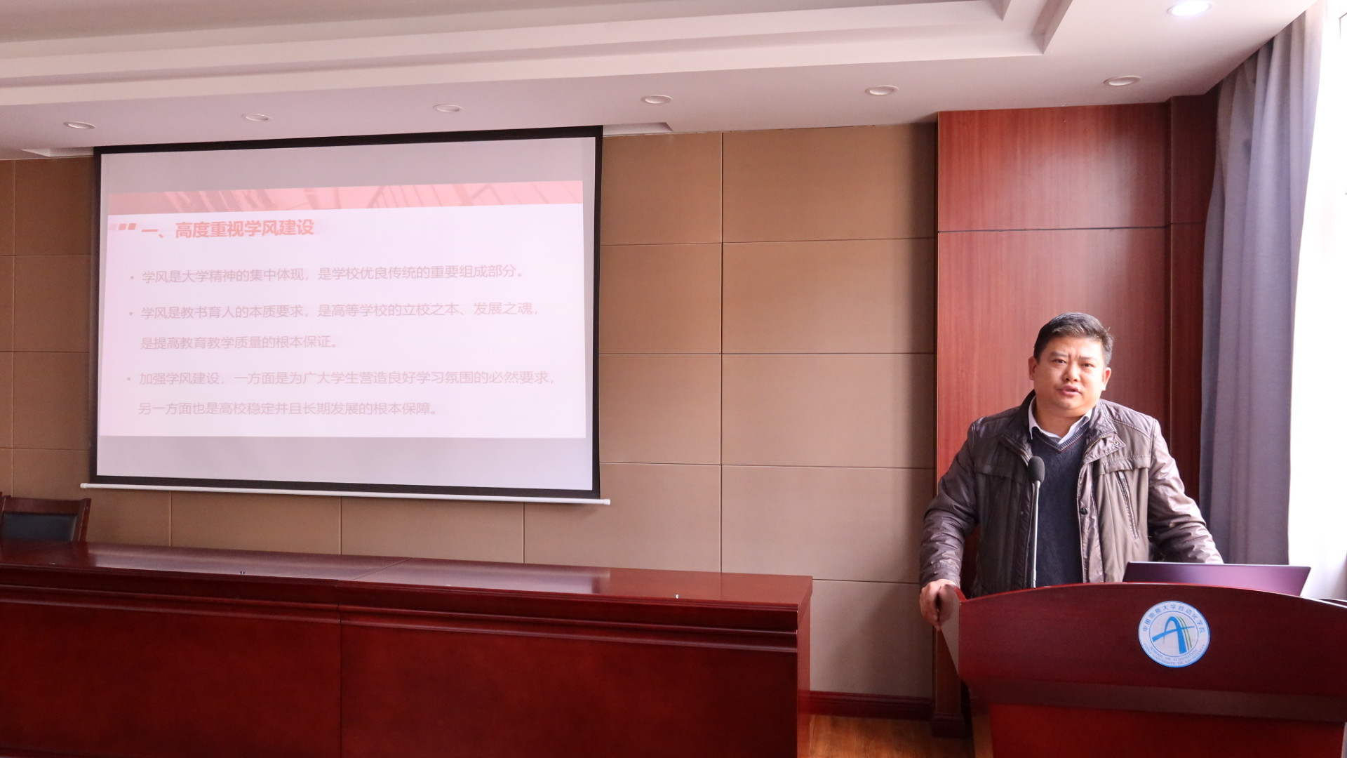 最后学院党委副书记何建新老师发表以“坚持不懈抓好学风建设”为主题的讲话。他表示,为建设在国内有重要地位、在国际有重要影响的18影片