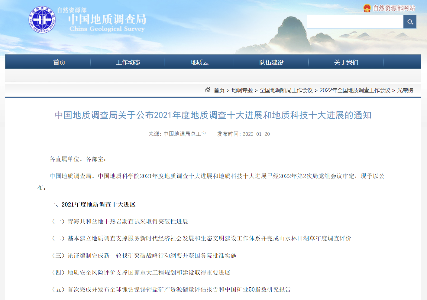 图1 2021年度地质调查十大进展、地质科技十大进展评选结果公布