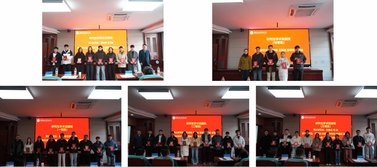 刘振焘宣读《关于表彰2025年研究生学术奖的决定》和《关于表彰第十一届研究生科技论文报告会优秀论文奖的决定》,与会领导嘉宾为获奖研究生颁发证书并合影留念。