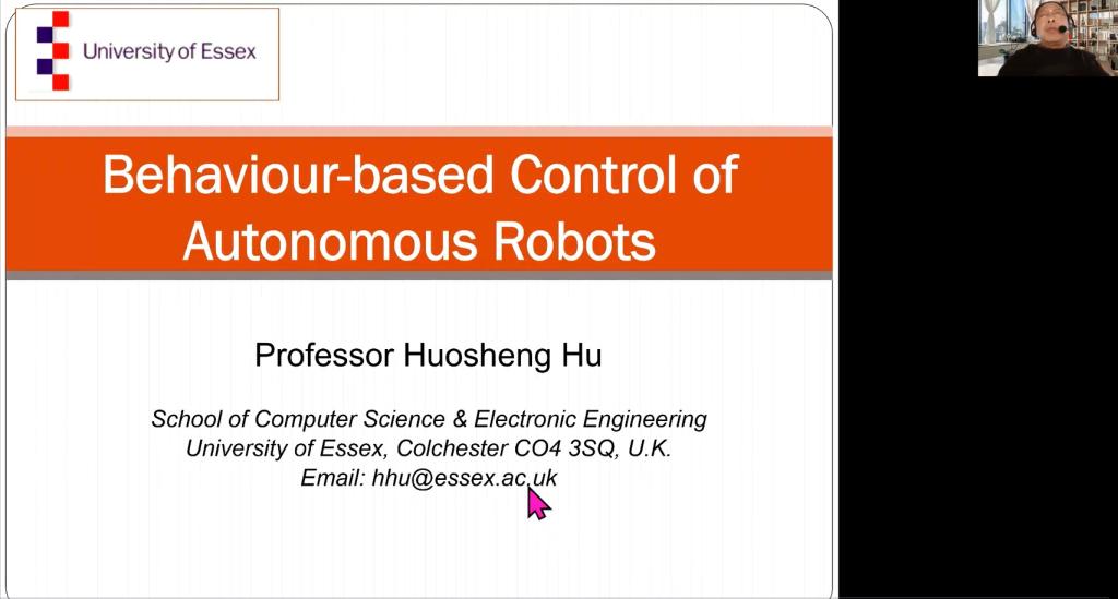 12月18日,第八场专题为Behaviour-based Control of Autonomous Robots,英国埃塞克斯大学胡豁生教授主讲,重点描述了基于行为的机器人技术的现状,并基于生物系统的启发,介绍在发展先进理论和技术方面的研究工作。