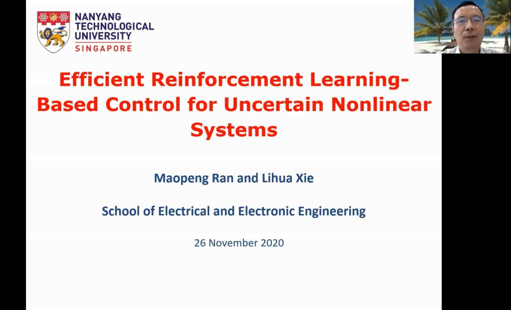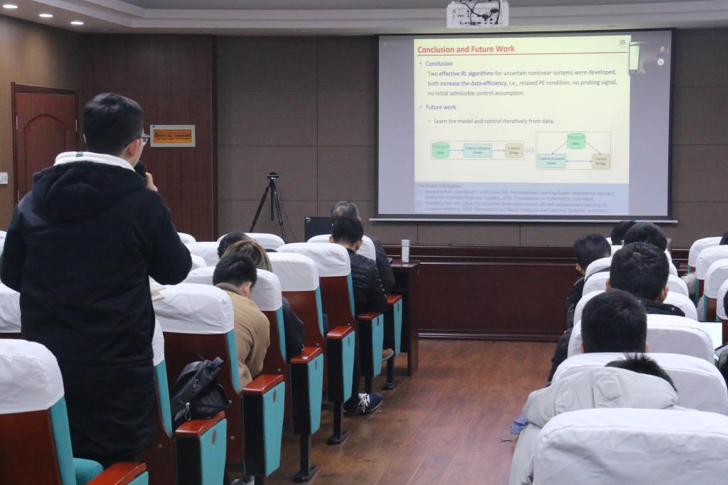 11月26日,“2020复杂系统先进控制与智能自动化秋季学术研讨会——杰出学者报告会”顺利举行。美国弗吉尼亚大学林宗利教授作了题为《Co-Design of Linear Low-and-High Gain Feedback and High Gain Observer for Suppression of Effects of Peaking on Semi-Global Stabilization》的学术报告,新加坡南洋理工大学谢立华教授作了题为《Efficient Reinforcement Learning-Based Control of Uncertain Nonlinear Systems》的学术报告,美国纽约大学姜钟平教授作了题为《Reinforcement Learning and Optimal Control for Uncertain Systems》的学术报告,加拿大阿尔伯塔大学黄彪教授作了题为《Robustness in Data Analytics》的学术报告,加拿大阿尔伯塔大学陈通文教授作了题为《Advanced Alarm Analytics Tools Developed at the University of Alberta》的学术报告。