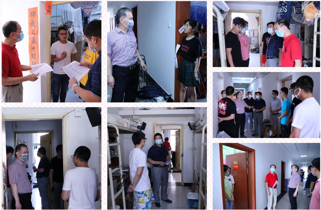 全体在校领导,各系、所负责人,辅导员分2组到学生寝室看望返校毕业生。