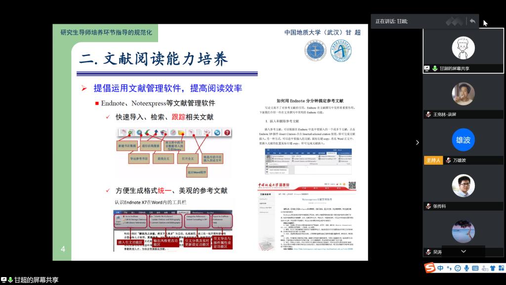 2020年导师指导能力提升专题研讨会以腾讯会议的形式举行。教务处副处长张建和、研究生院常务副院长张宏飞、副院长吴堂高,以及18影片