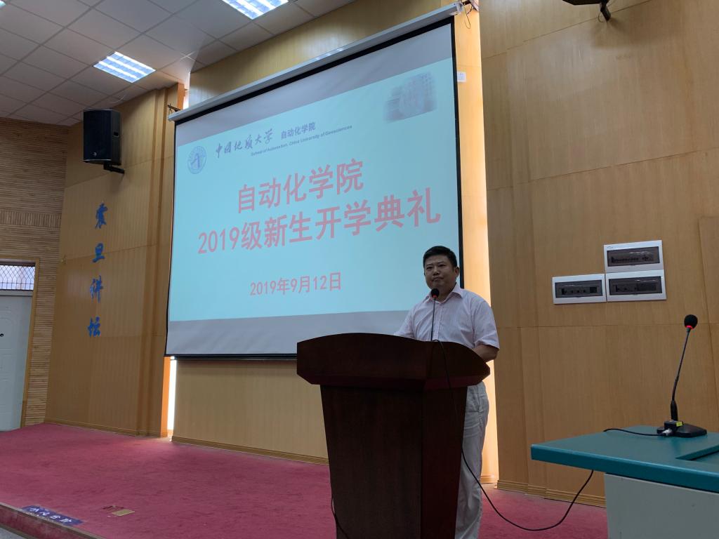 2019级开学典礼在教三楼109报告厅隆重举行。院领导吴敏、董浩斌、曹卫华、何建新,各系(中心)主任,教师代表,学工组老师及2019级全体本科、研究生新生参加典礼。院党委副书记何建新主持典礼。