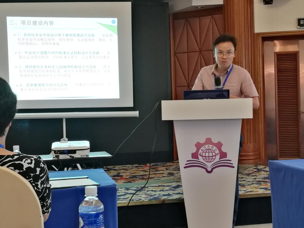 吴敏教授担任分会场主席。熊永华教授、贺良华副教授和张莉君副教授分别就所撰写的“面向智能制造发展需求的自动化专业本科毕业设计改革方案”、“中约大学自动化专业人才培养模式初探”和“自动化专业实验实践教学体系和教学模式改革与探索”等论文作了宣讲。