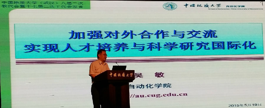 (武汉)八届二次代会暨十七届二次工代会闭幕式上,院长吴敏作了题为“加强对外合作与交流·实现人才培养与科学研究国际化”的大会发言。
