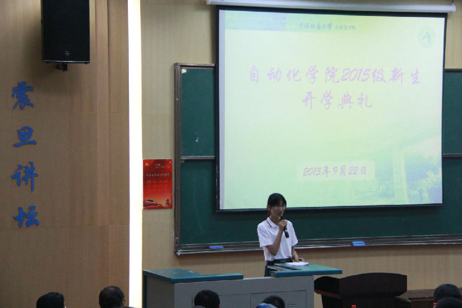 2015级新生开学典礼在教三楼111隆重举行。吴敏、董浩斌、曹卫华、王广君、陈鑫、吴涛、李志华、安剑奇、刘小波等院系领导参加了大会。