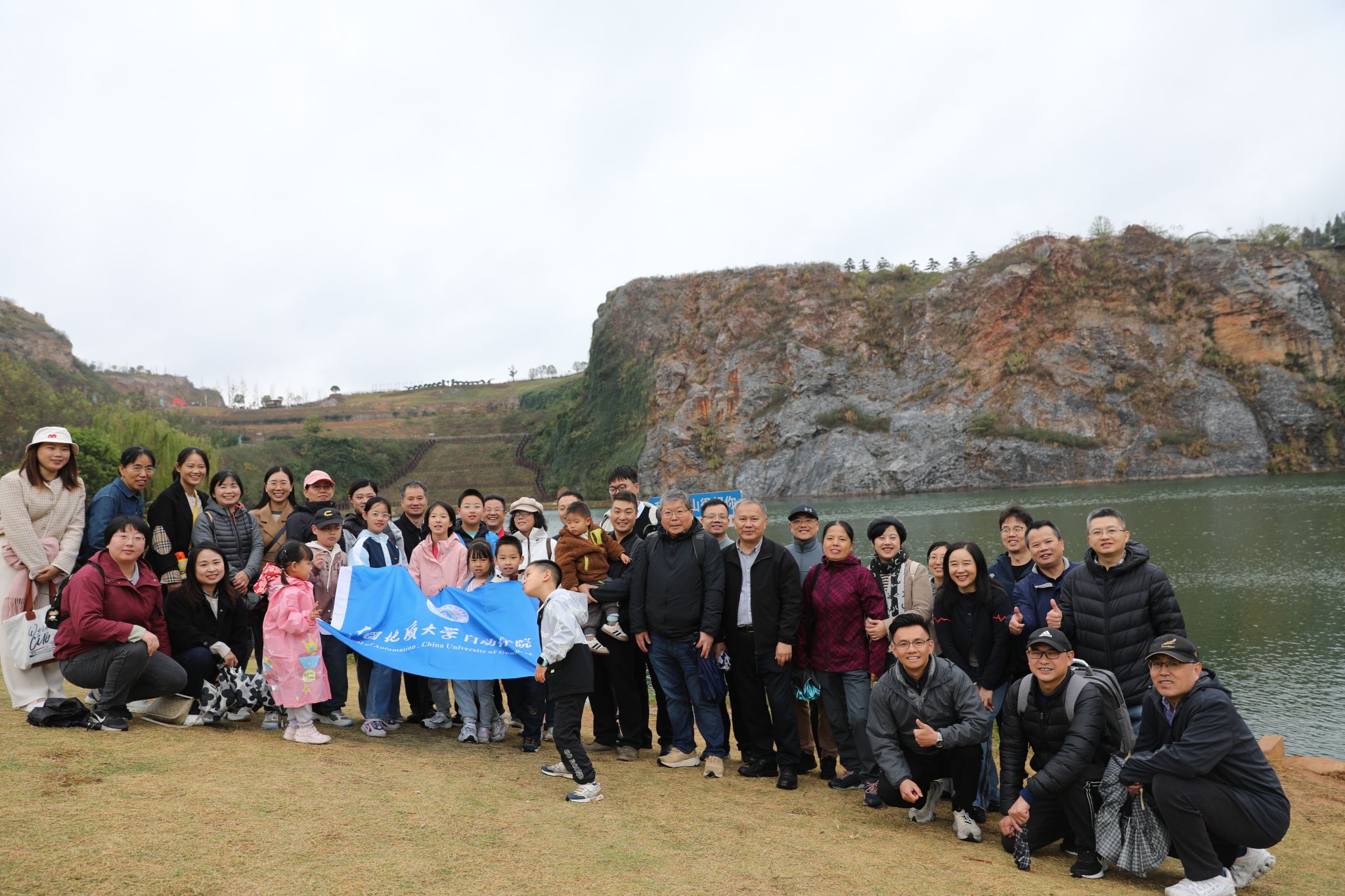 伴随着秋日细雨,老师们乘坐大巴来到江夏灵山风景区。灵山风景区是武汉首个矿山主题景区,将矿山生态修复、复垦利用、文化旅游和乡村振兴相融合。走进景区,蒙蒙细雨更添云雾缭绕,犹如一幅水墨画徐徐展开,矿坑湖水碧绿明如镜,倒映着周围的山色与秋色。空气中富含的负氧离子,让人清新醒脑,平日工作生活中的劳累早已被涤荡一空。老师们漫步幽径,静享时光之宁,或天幕畅谈,欢声笑语连连。