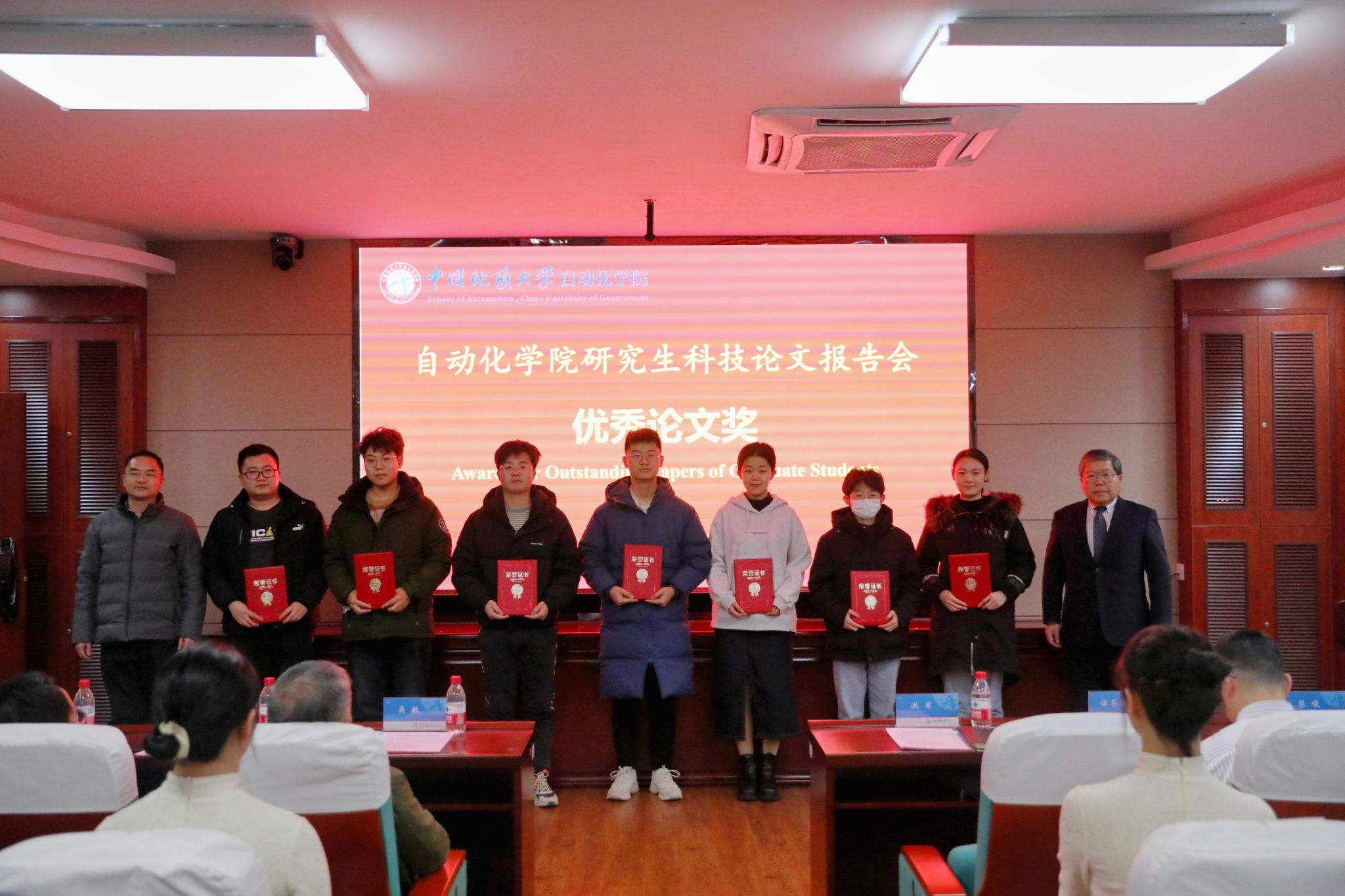 随后,副院长熊永华教授宣读了《关于表彰第九届研究生科技论文报告会优秀论文奖的决定》和《关于表彰2023年研究生学术奖的决定》。与会领导、嘉宾先后上台为获奖研究生代表进行颁奖。