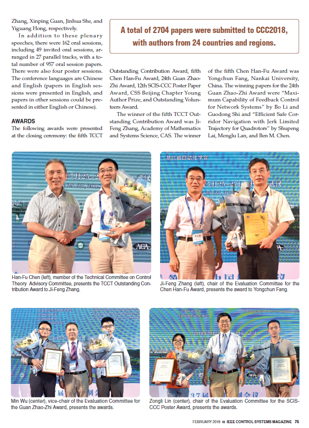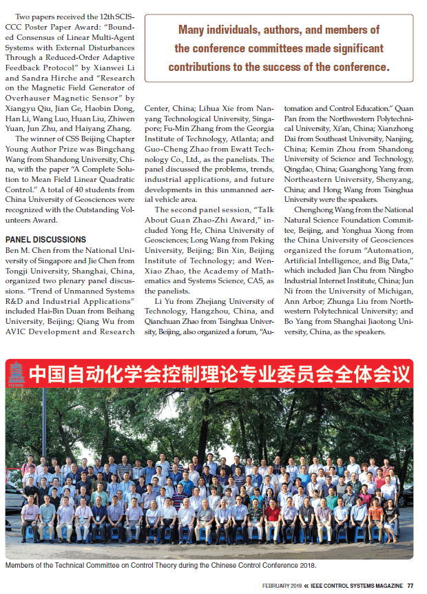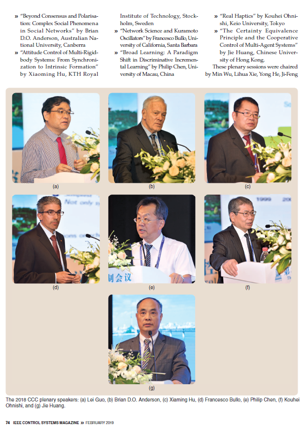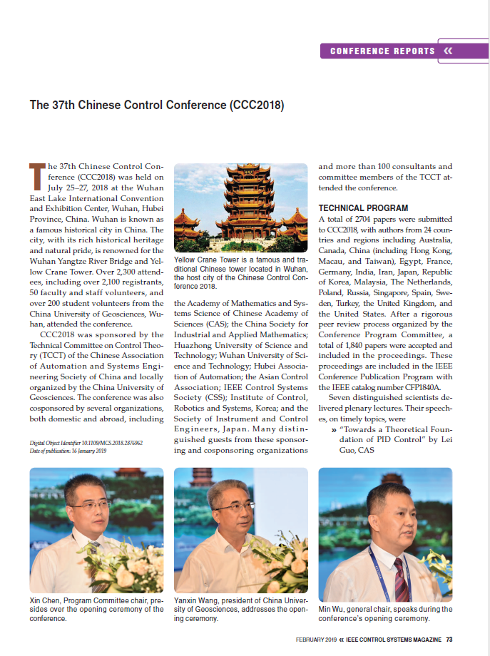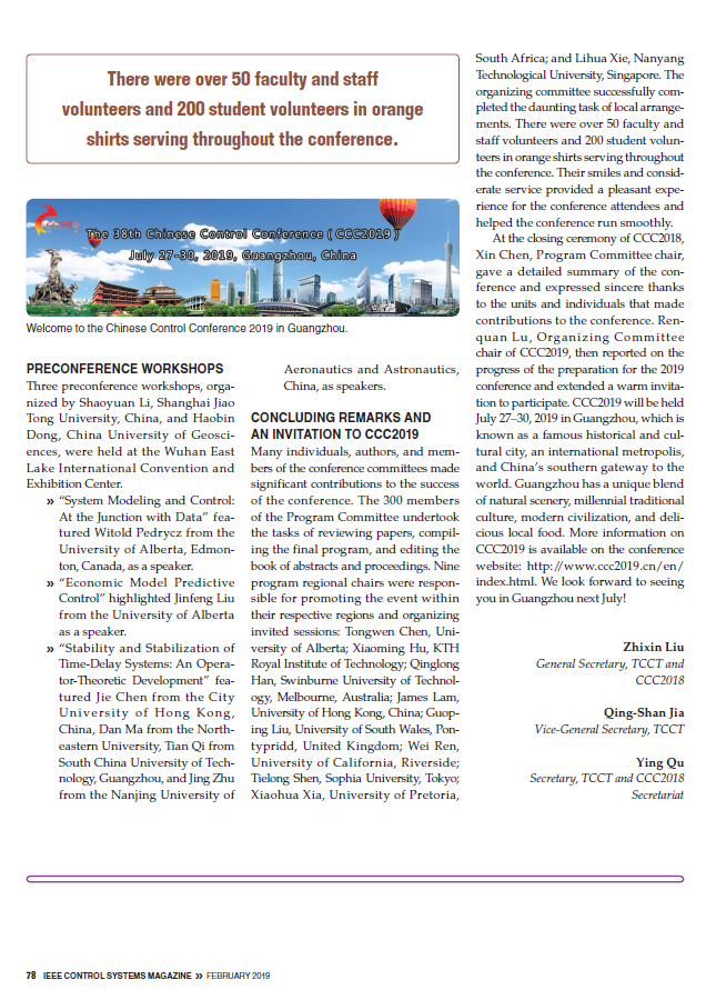 2018年7月25日至27日18影片 承办的第37届中国控制会议(CCC2018)获得圆满成功。本次会议受到国际学界关注,国际知名期刊《IEEE Control Systems Magazine》对会议作了大篇幅报道。