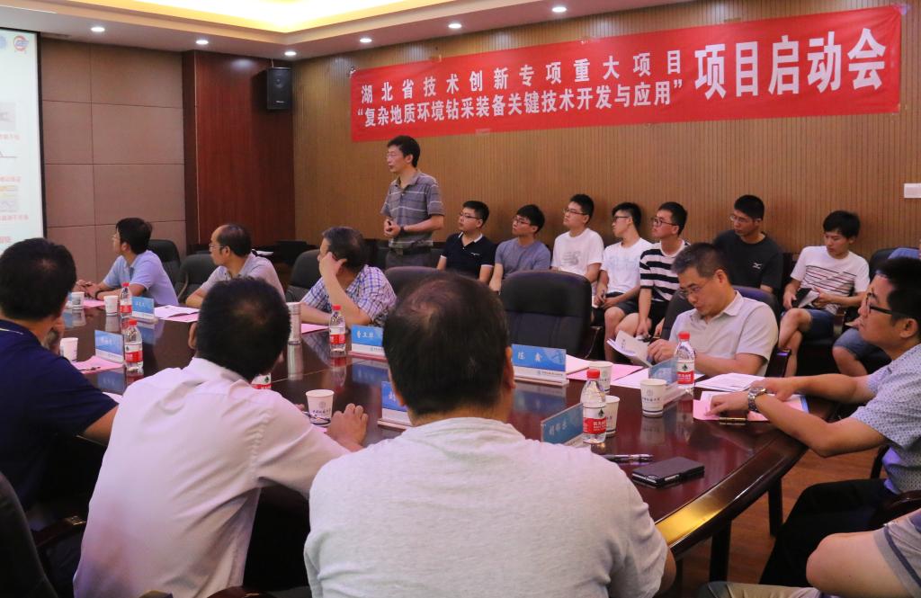 2018年713日,湖北省技术创新专项重大项目“复杂地质环境钻采装备关键技术开发与应用”项目启动,18影片 曹卫华教授作为技术负责人汇报了该项目的实施方案。湖北省科技厅高新处、湖北省地质局科技处、湖北省城市地质工程院、18影片 (武汉)、中国地质装备集团有限公司等相关单位的领导、负责人及项目组其他成员参了会议。