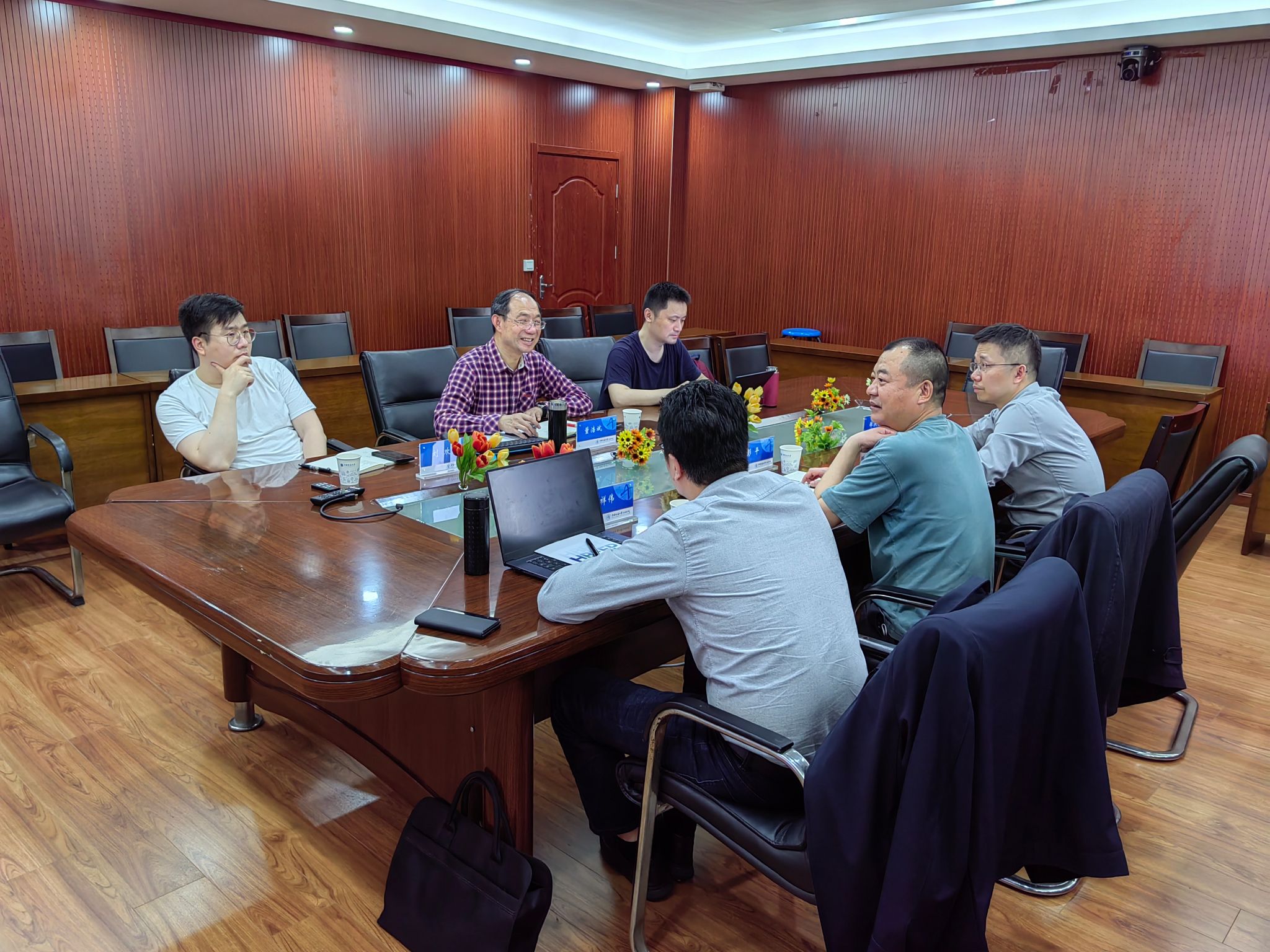 董浩斌教授向来宾介绍了智能地球物理仪器与信息处理团队发展、人才培养和科学研究方面的情况,以及团队在地球物理微弱信号检测方法与技术和磁法、电(磁)法探测仪器关键技术与应用等领域取得的研究成果。彭平董事长回顾了湖北省长江生态环保产业技术研究院的发展历程,介绍了研究院的主要服务领域,表达了在产学研一体化、先进技术工程应用等方面与学院合作的意愿。郑洪标院长介绍了公司在地球物理电磁法勘探过程中需要解决的问题,希望提升勘探仪器的智能化和国产化水平。双方就未来可能达成的合作方向进行了深入的讨论,展望了未来的合作发展方向。