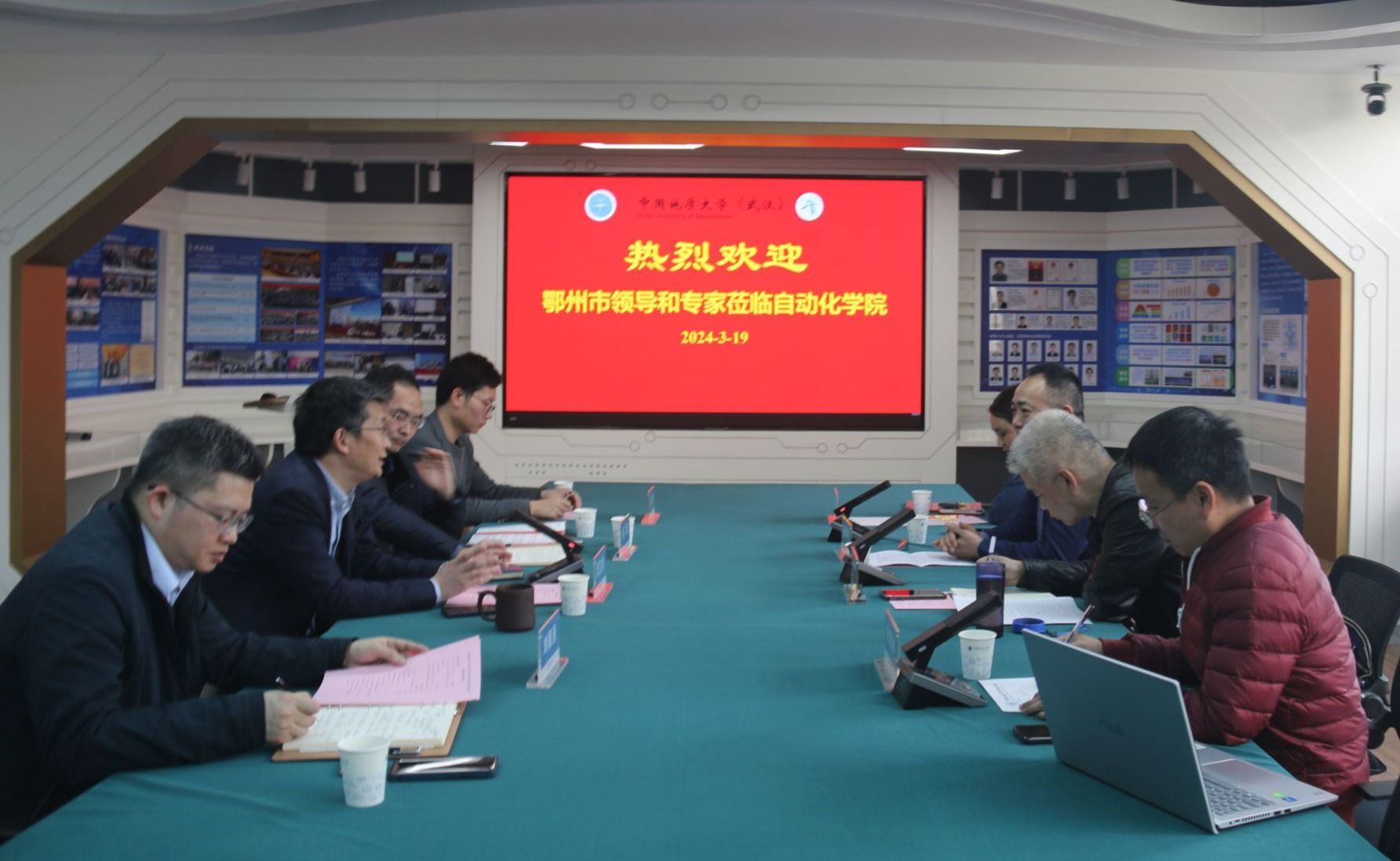 319日,葛店经济开发区科创中心支部书记黄征、武汉莱尔特激光科技有限公司董事长彭怀亮等一行4人来18影片 交流访问。18影片 院长曹卫华、研究生院副院长洪军、人工智能研究院副院长刘振焘、未来智能技术研究所所长陆承达等参加交流。刘振焘副院长主持会议。