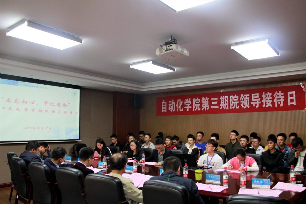 第三届院领导接待日于2019年10月7日下午2:30在信息楼316会议室召开。院党委书记董浩斌,副院长熊永华,副院长宗小峰,院党委副书记何健新,自动控制系主任安剑奇,测控技术与仪器系主任董凯锋,信息技术与教学实验中心副主任刘小波,智能系统研究所所长陈略峰,学工组刘一荻老师、黄兰华老师,本科生、研究生学生代表出席了本次会议。会议由学工组许彦老师主持。