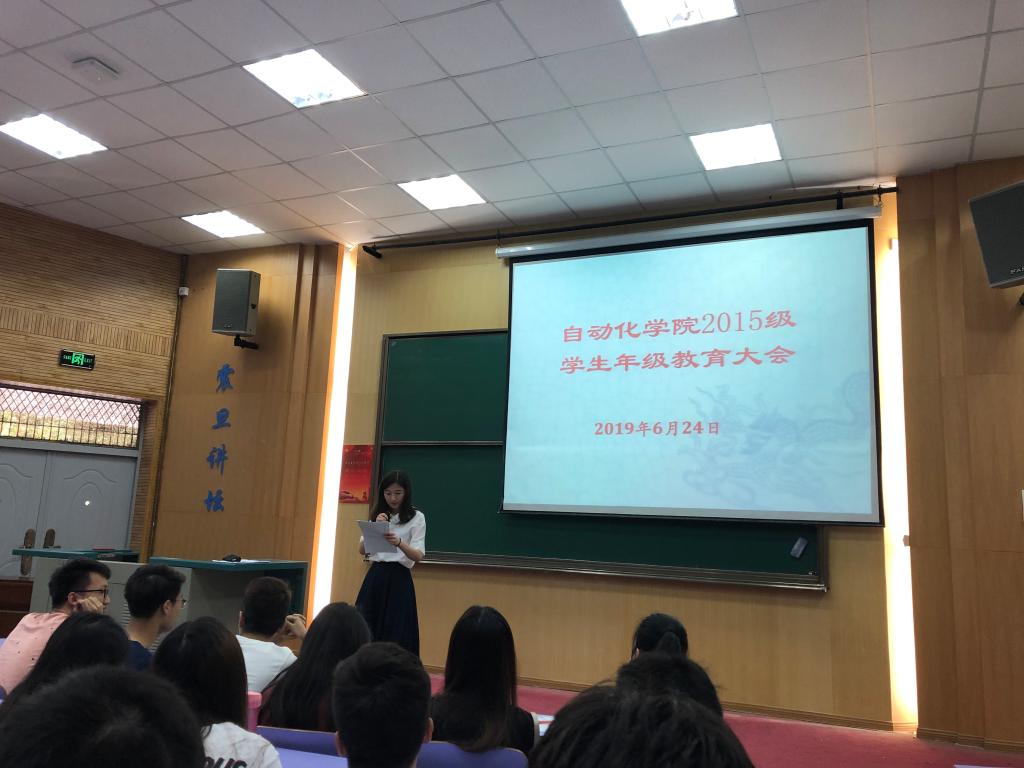 6月24日上午,18影片 2019届毕业生教育大会在教三楼111召开,学院全体毕业生参加会议,辅导员许彦主持会议。