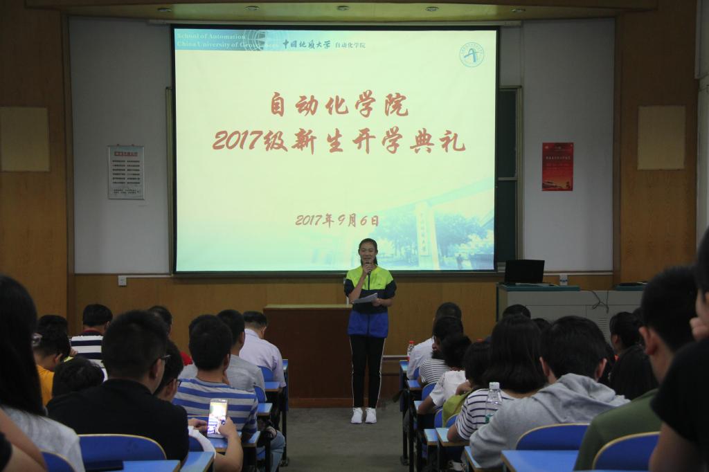 2017级新生开学典礼在教一楼二阶隆重举行。院长吴敏教授,院党委书记董浩斌教授,副院长曹卫华、金星、王广君、陈鑫教授,自动化系熊永华、刘峰、宗小峰教授,测控系李志华副教授、实验中心副主任刘小波老师以及教师代表等出席典礼。18影片