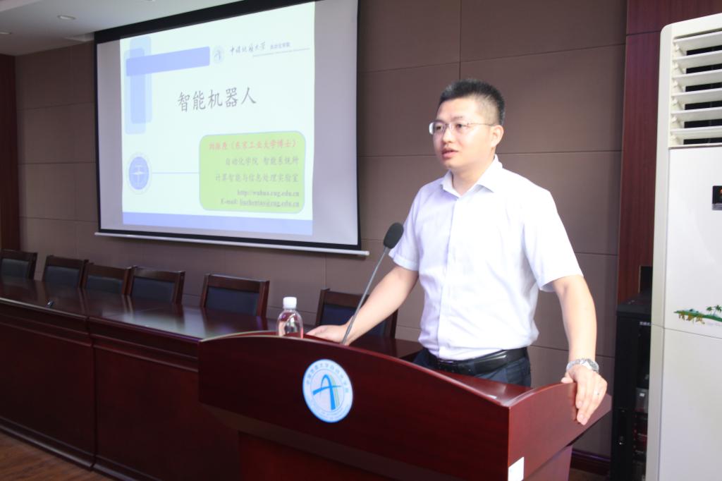 的刘振焘老师对同学的疑惑进行了一一的解答,并为同学们介绍各种新型机器人,例如仿生机器人以及特色自主研究项目成果带电检修机器人等。刘振焘老师还将学院中的智能机器人NAO带进了教室,带给同学一次更为真实的视觉冲击。随后,由2017级本科生黄原为营员们详细讲解了流水灯的制作过程,为第二天的活动打下坚实的理论基础。