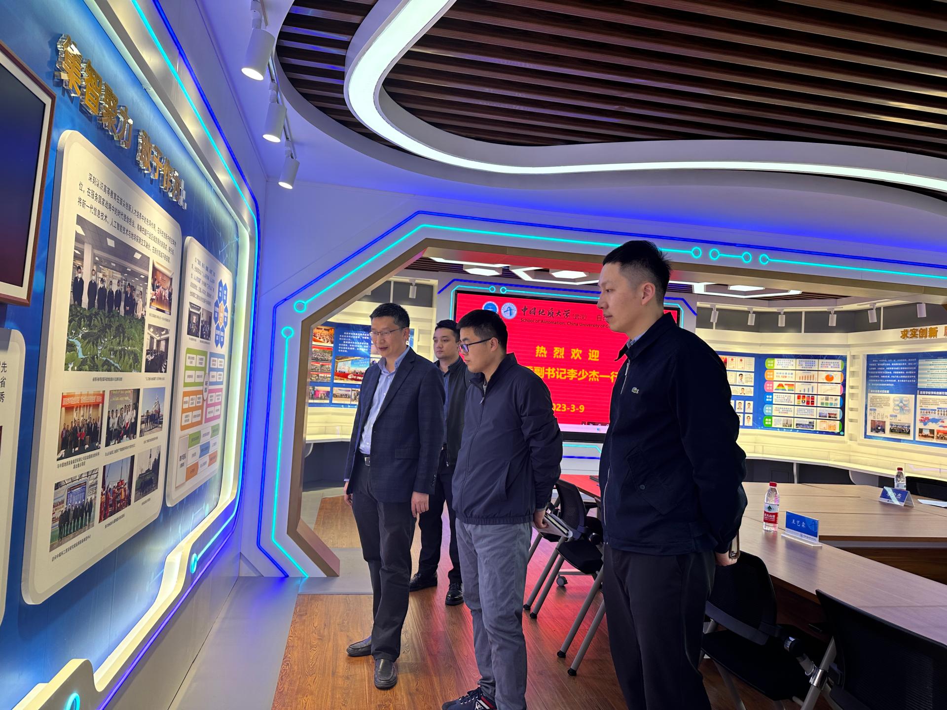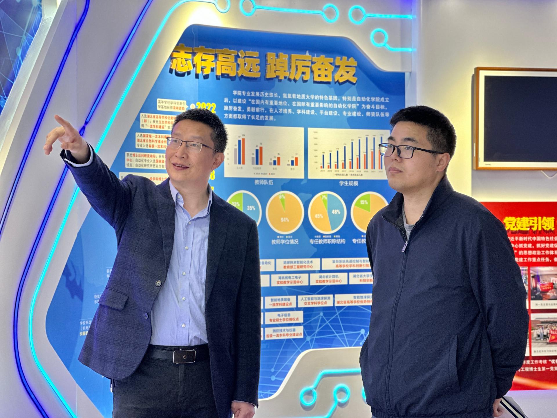 参观了学院研究生工作室及学院文化室,学院院长曹卫华教授就学院历史沿革、师资力量以及本科生、研究生教育等进行了介绍。他提到,学院坚持以立德树人为根本任务,打造了“走进自动化·新工科创新人才培养实践工程”和“研究生学术年会”等学院特色品牌活动,在高水平师资队伍和多层次培养平台的支持下,提升了学院学生的创新能力也拓宽了国际化视野。