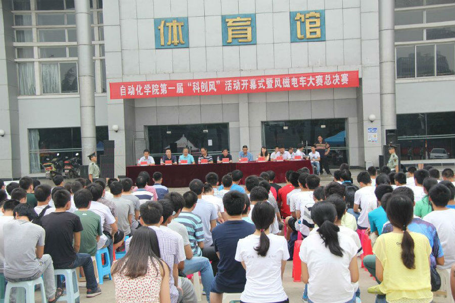 第一届“科创风”系列活动之风磁电车大赛总决赛在体育馆门口顺利进行,副校长赖旭龙、教务处副处长王兴、学工处副处长马彦周、校团委副书记胡肖、学院党委书记董浩斌、学院副院长曹卫华、学院副书记何建新、大学生创新创业中心副主任张华、学院团委书记谭文伦参加了此次活动。
